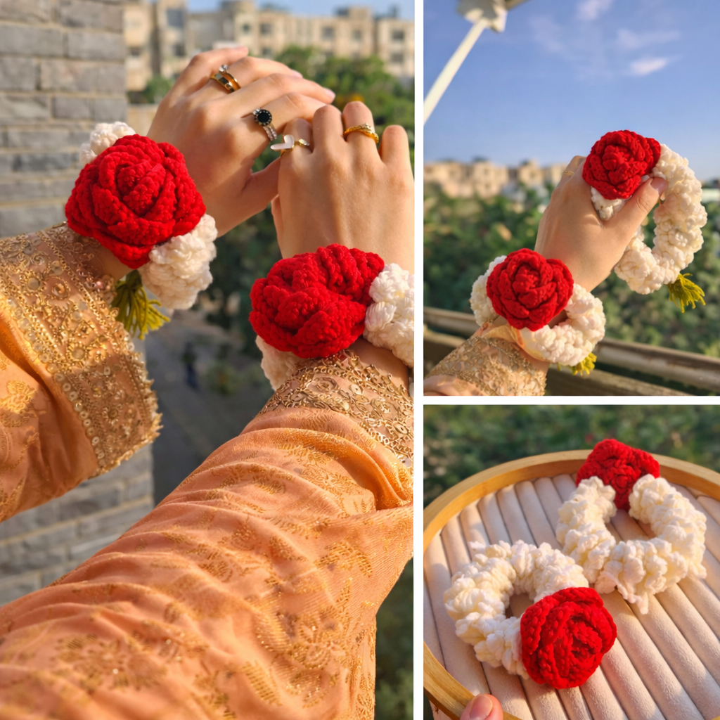 DIVERSE DEPOT™ - Handmade Crochet Red Rose & Jasmine Gajray